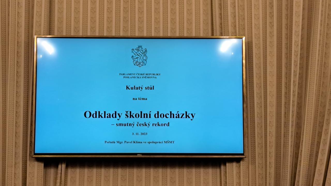 V pátek 3. listopadu jsem se mohl díky pozvání pana poslance Klímy zúčastnit kulatého stolu v Poslanecké sněmovně Parlamentu České republiky ohledně odkladů školní docházky. U stolu se sešli poslanci, senátoři, úředníci z MŠMT a lidé z terénu. Zastoupeny byly mateřské školy, základní školy, pedagogicko-psychologické poradny, Česká školní inspekce, zřizovatelé a další.